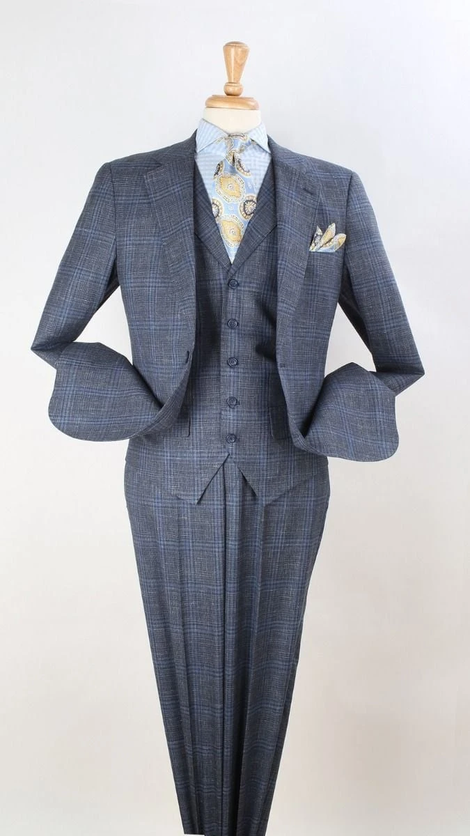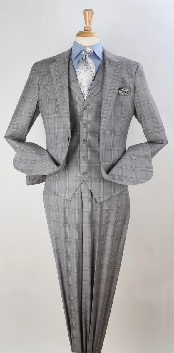 Apollo King Men’s 3pc 100% Wool Suit – Notch Lapel Vest