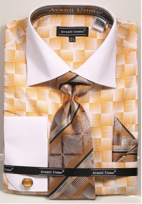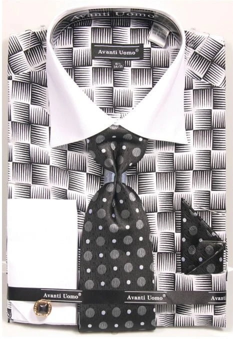 Avanti Uomo Men’s French Cuff Shirt Set – Exotic Checkerboard