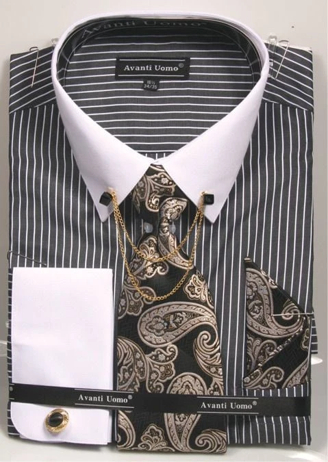 Avanti Uomo Men’s French Cuff Shirt Set – Fashion Collar Chain