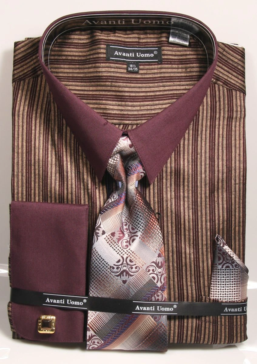 Avanti Uomo Men’s French Cuff Shirt Set – Unique Stylish Stripes
