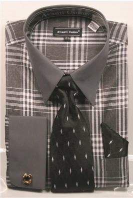 Avanti Uomo Men’s French Cuff Shirt Set – Unique Windowpane