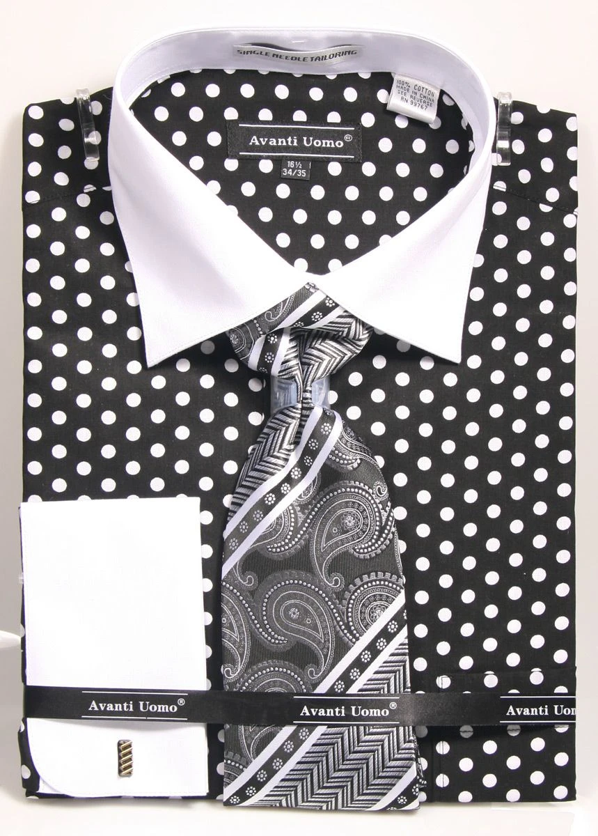 Avanti Uomo Men’s Outlet 100% Cotton French Cuff Shirt Set – Polka Dots