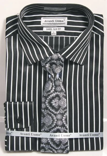 Avanti Uomo Men’s Slim Fit Dress Shirt Set – Bold Stripe