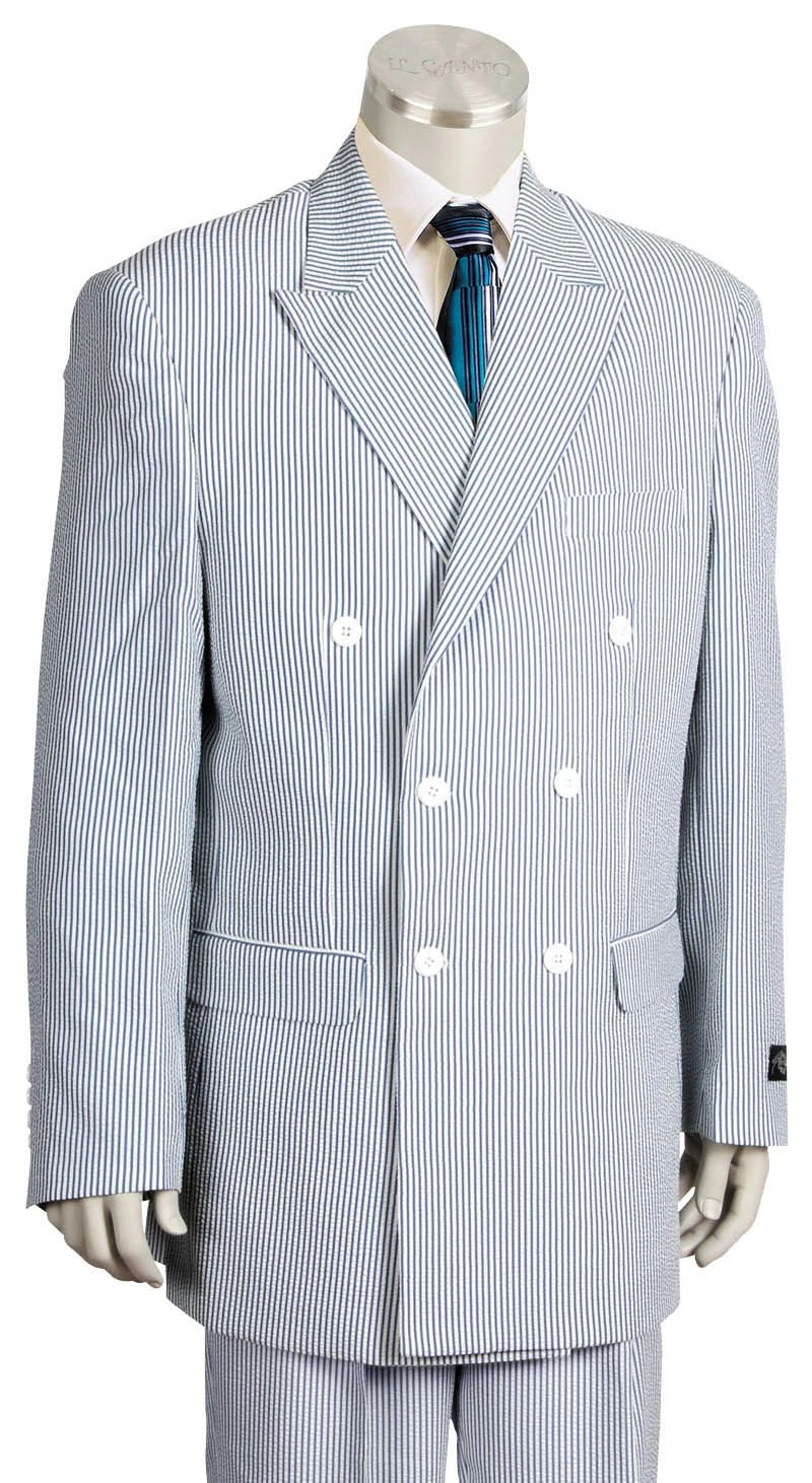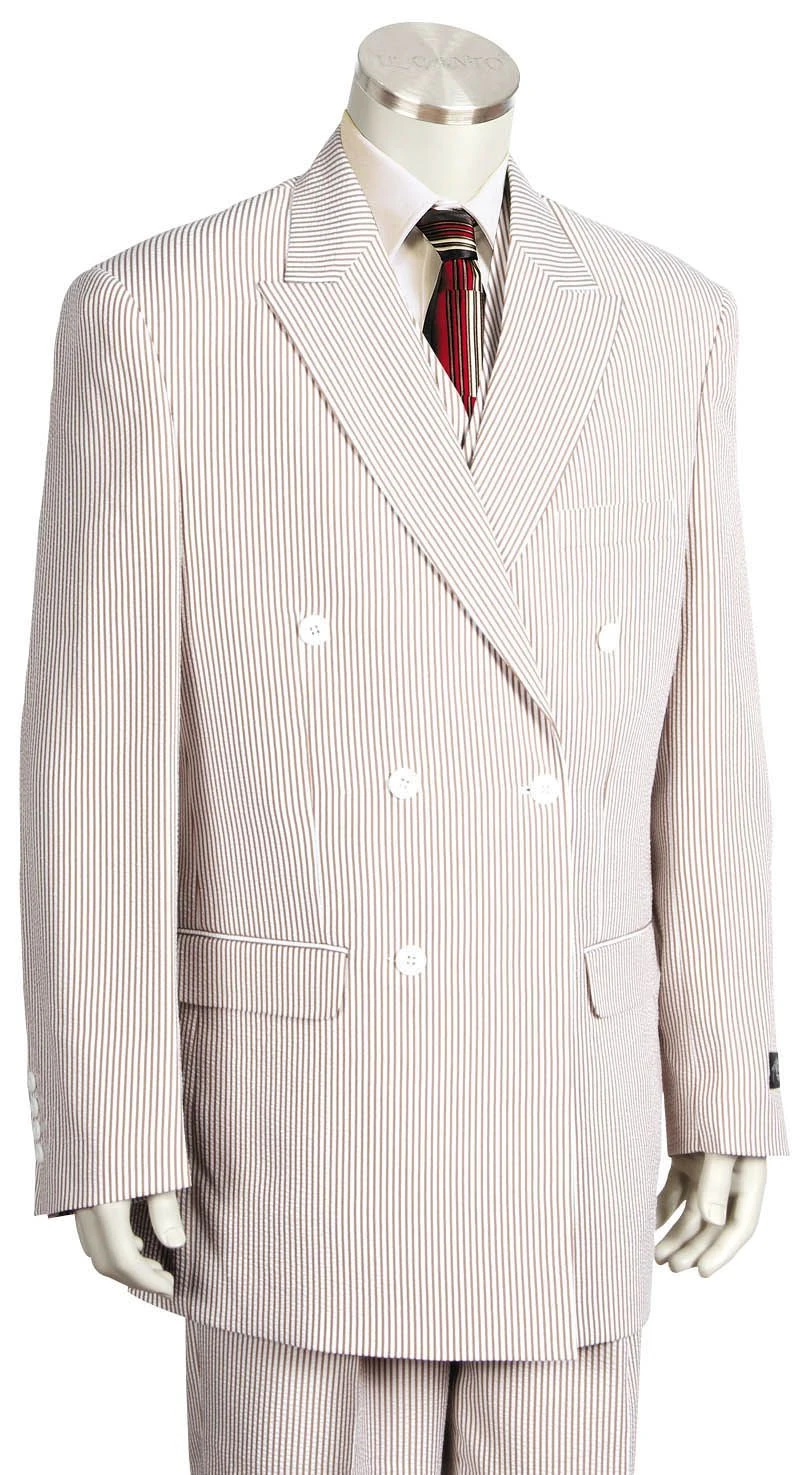 Canto Men’s 3 Piece Poly-Rayon Seersucker Suit – Double Breasted