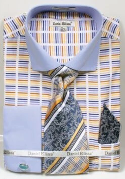 Daniel Ellissa Men’s French Cuff Dress Shirt Set – Basic Two Tone