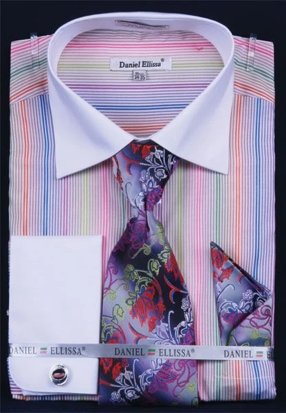 Daniel Ellissa Men’s French Cuff Dress Shirt Set – Multi Stripe