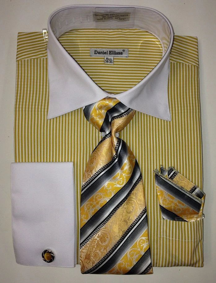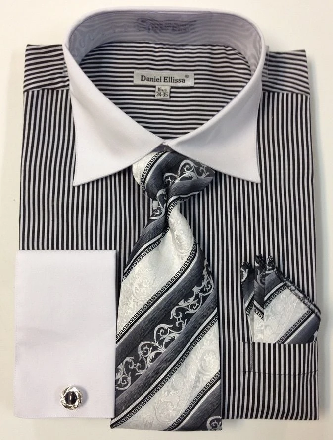 Daniel Ellissa Men’s French Cuff Dress Shirt Set – Thin Stripes