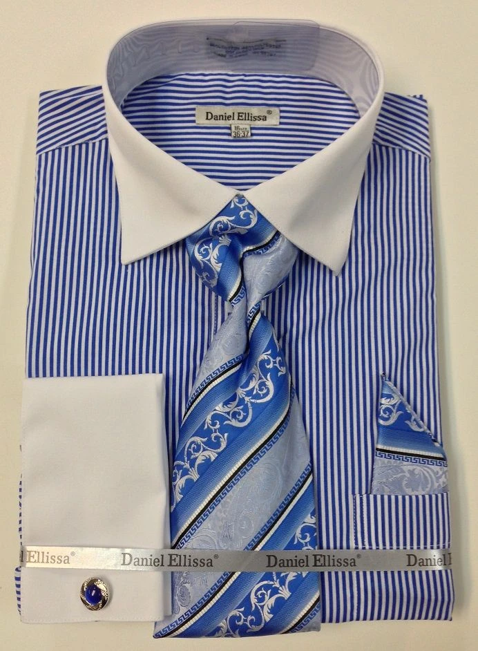 Be the first to review “Daniel Ellissa Men’s French Cuff Dress Shirt Set – Thin Stripes” Cancel reply