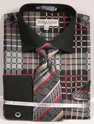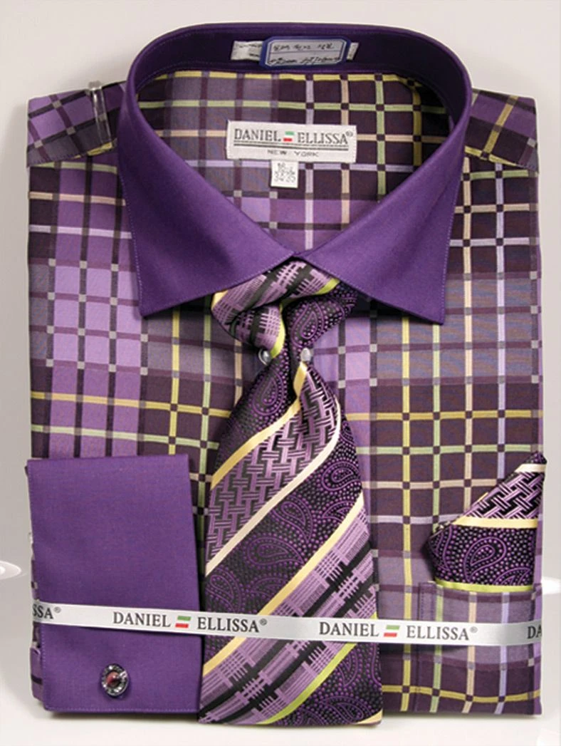 Daniel Ellissa Men’s French Cuff Dress Shirt Set – Basic Two Tone