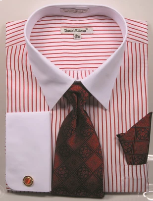 Daniel Ellissa Men’s French Cuff Dress Shirt Set – Multicolor Stripe