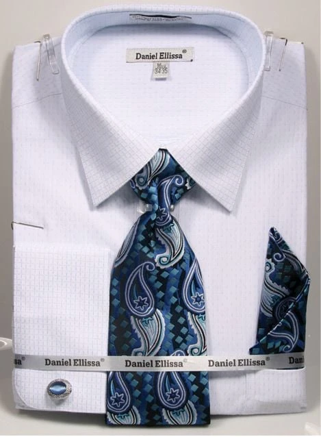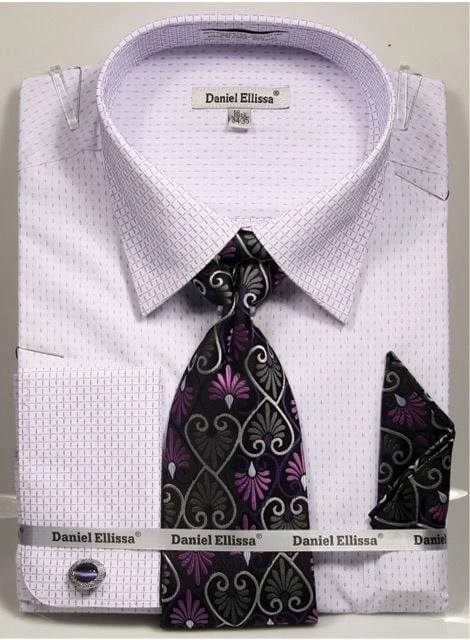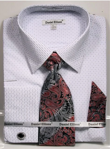 Daniel Ellissa Men’s French Cuff Shirt Set – Stylish Mini Pattern
