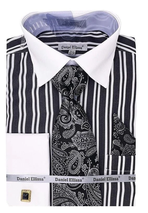 Daniel Ellissa Men’s French Cuff Shirt Set – Twin Stripes