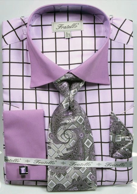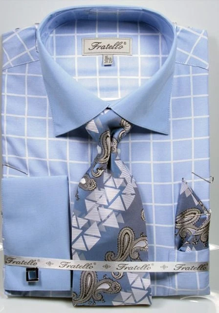Be the first to review “Fratello Men’s French Cuff Dress Shirt Set – Check Pattern” Cancel reply
