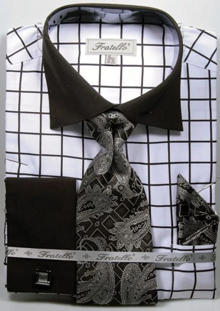 Fratello Men’s French Cuff Dress Shirt Set – Check Pattern