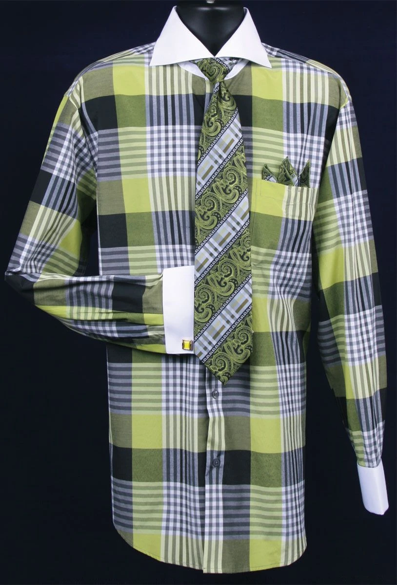 Fratello Men’s French Cuff Dress Shirt Set – Colorful Multi Checker