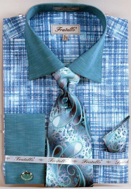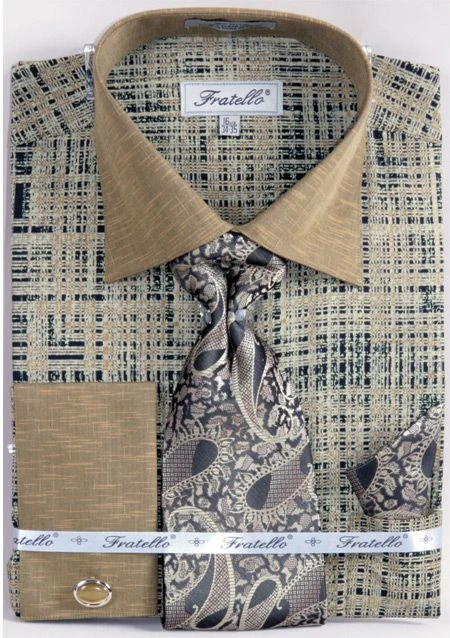 Fratello Men’s French Cuff Dress Shirt Set – Tone On Tone