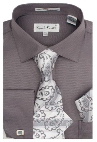 Karl Knox Men’s French Cuff Shirt Set – Hollow Jacquard
