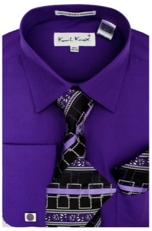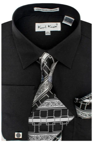 Karl Knox Men’s French Cuff Shirt Set – Layered Cubic Design