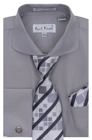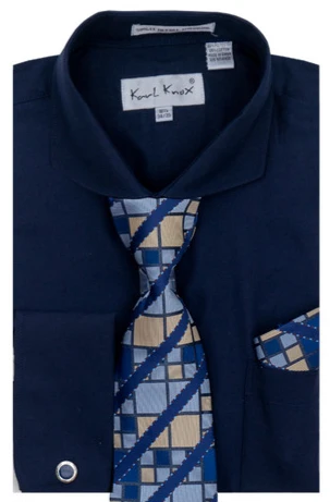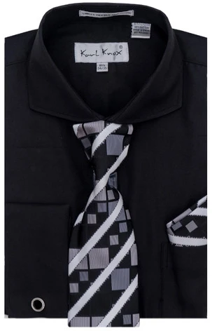 Karl Knox Men’s French Cuff Shirt Set – Varied Checker