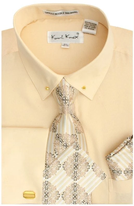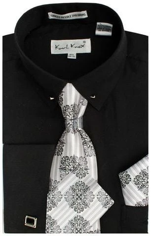 Karl Knox Men’s French Cuff Shirt Set – Sharp Collar Bar
