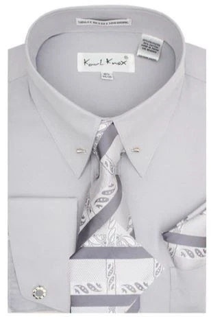 Karl Knox Men’s French Cuff Shirt Set – Two Tone Tie
