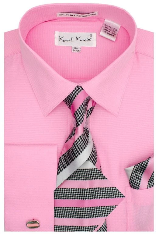 Karl Knox Men’s French Cuff Shirt Set – Unique Striped Tie