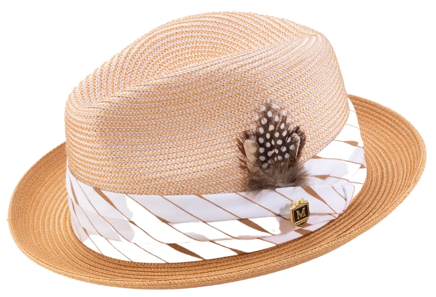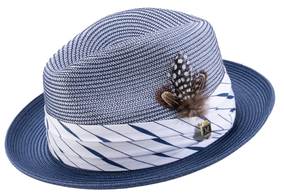 Montique Men’s Fedora Style Straw Hat – Diamond Stripes