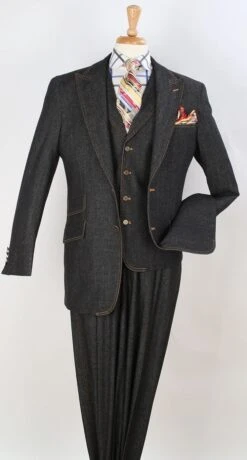 Royal Diamond Men’s 3 Piece Fashion Suit – 100% Cotton Denim