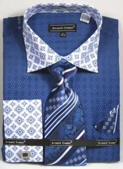 Avanti Uomo Men’s Outlet French Cuff Dress Shirt Set – Varied Patterns