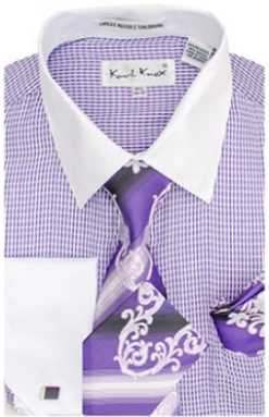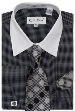 Karl Knox Men’s French Cuff Shirt Set – Layered Cubic Design