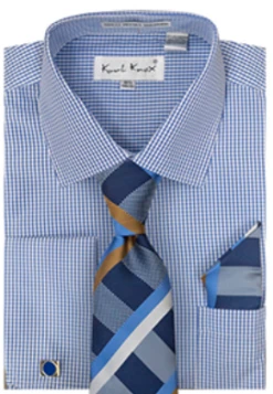 Karl Knox Men’s French Cuff Shirt Set – Triple Pattern Checker