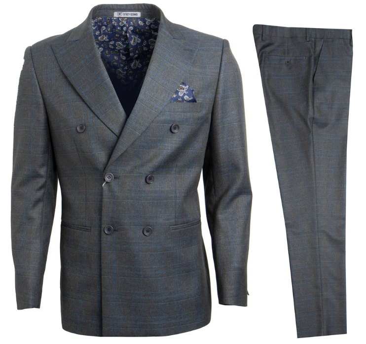Stacy Adams Men’s 3 Piece Double Breasted Suit – Glen Check