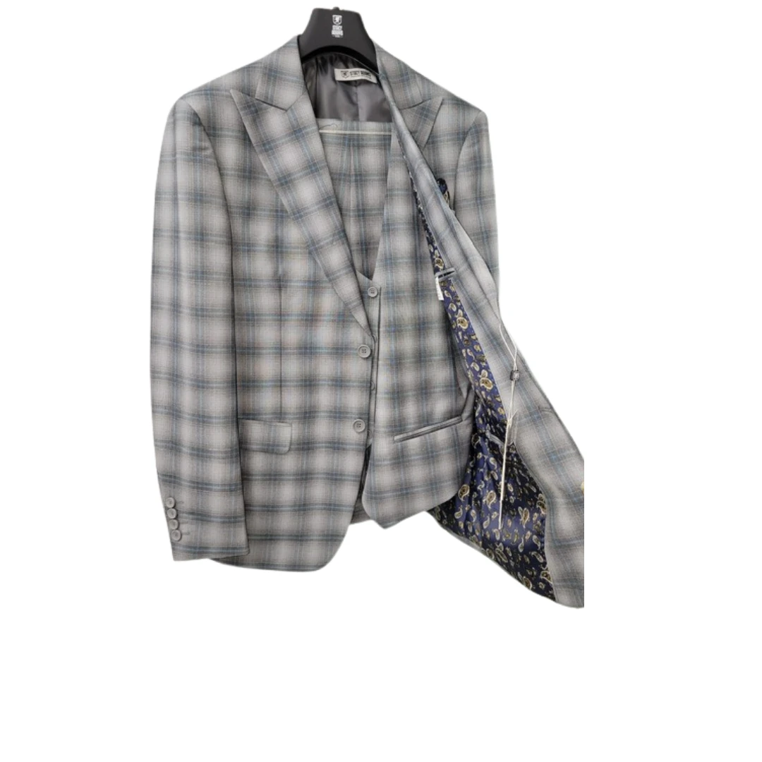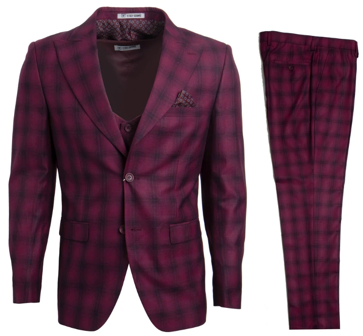 Stacy Adams Men’s 3 Piece Executive Slim Suit – Windowpane