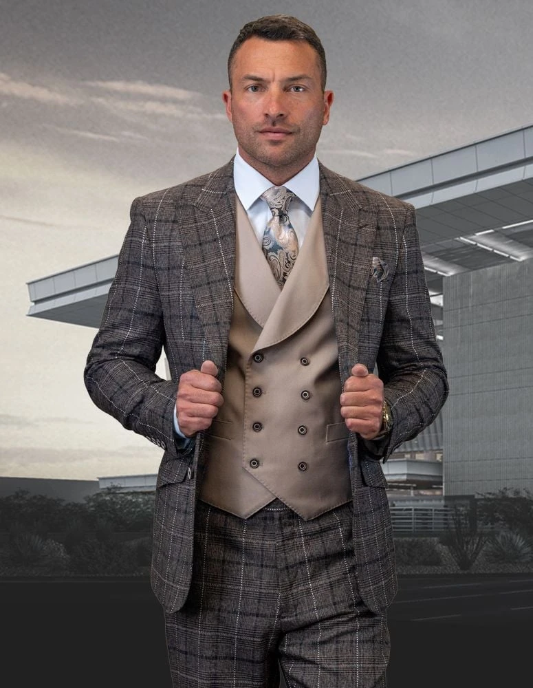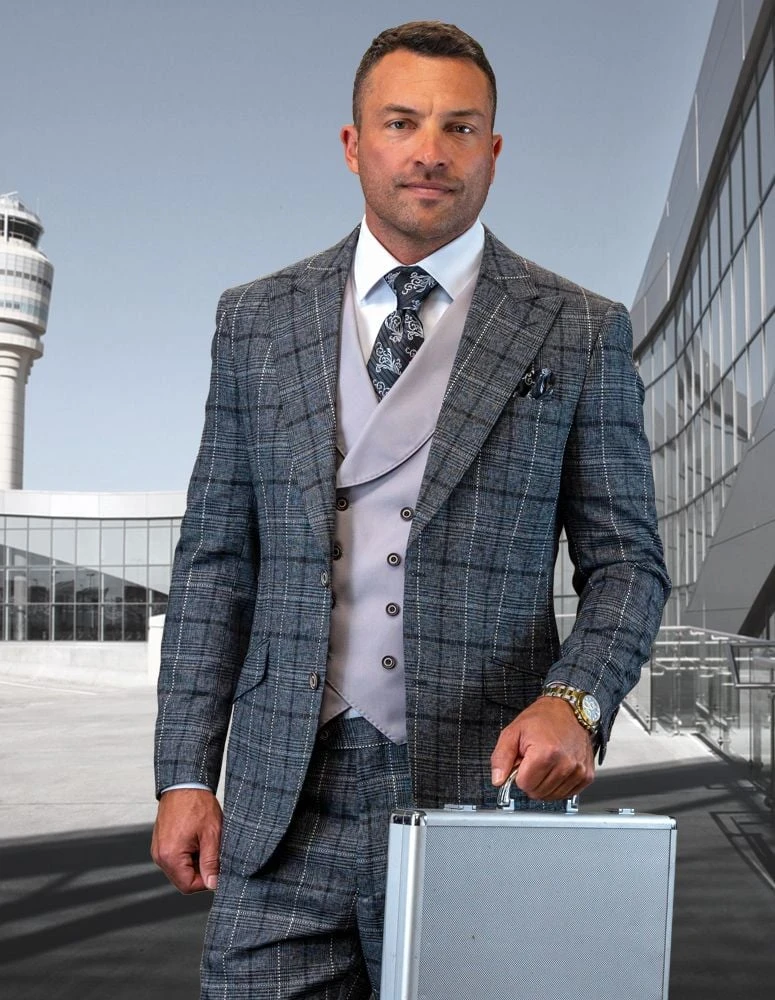 Statement Men’s 100% Wool 3 Piece Suit – Textured Plaid