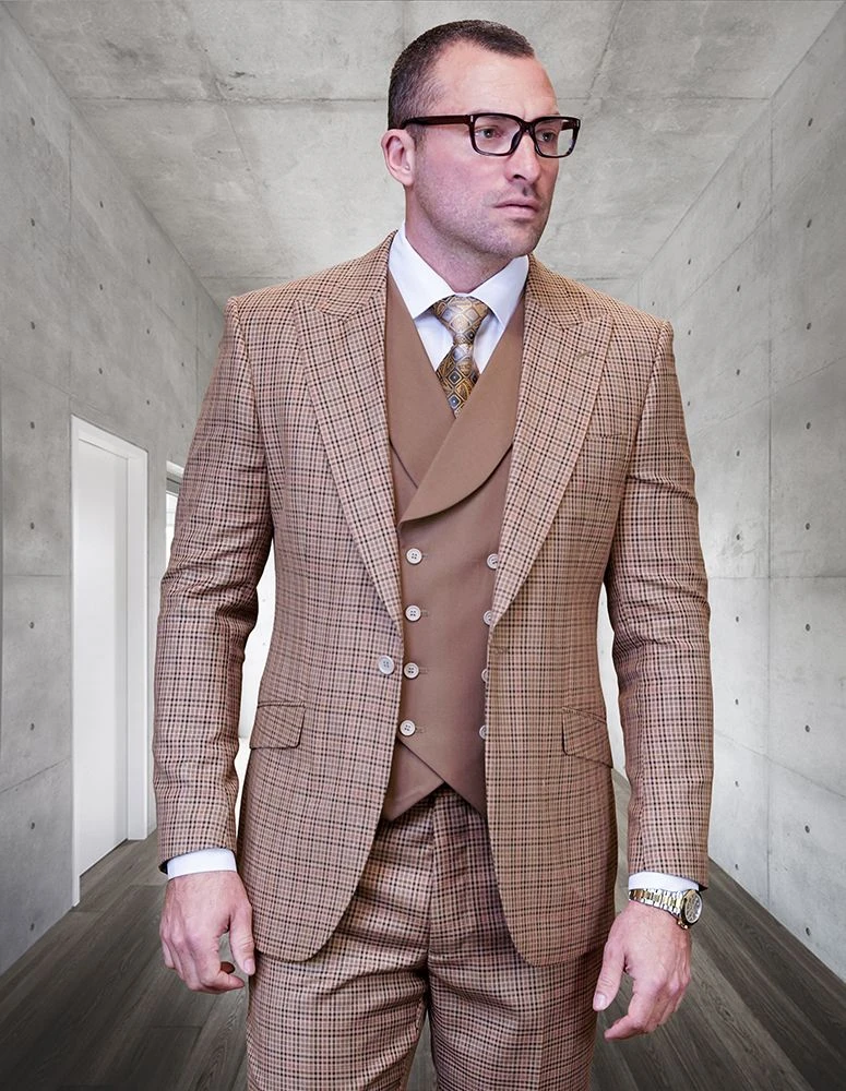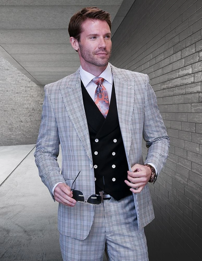 Statement Men’s 100% Wool 3 Piece Suit – Fine Line Plaid