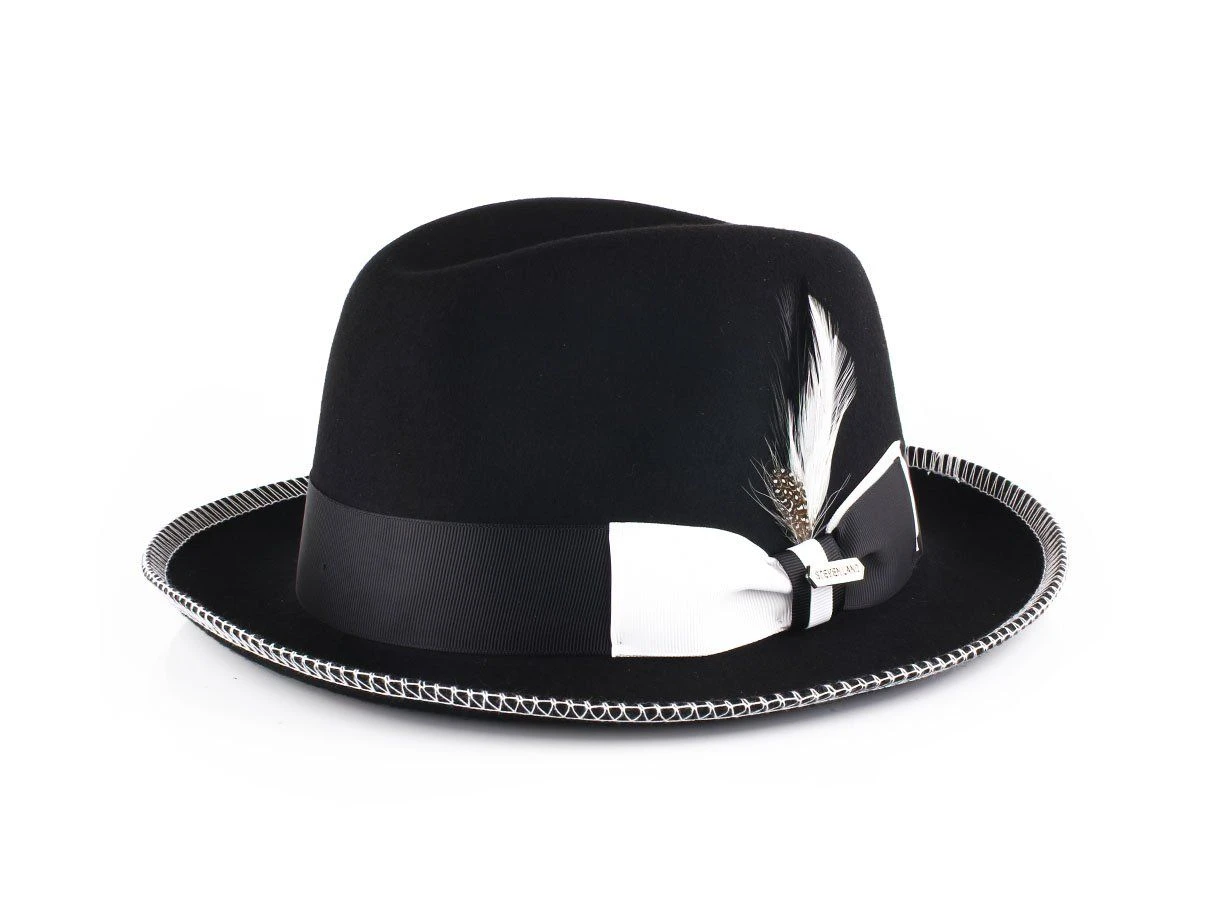 Steven Land Men’s 100% Wool Fedora Hat – Accented Trim
