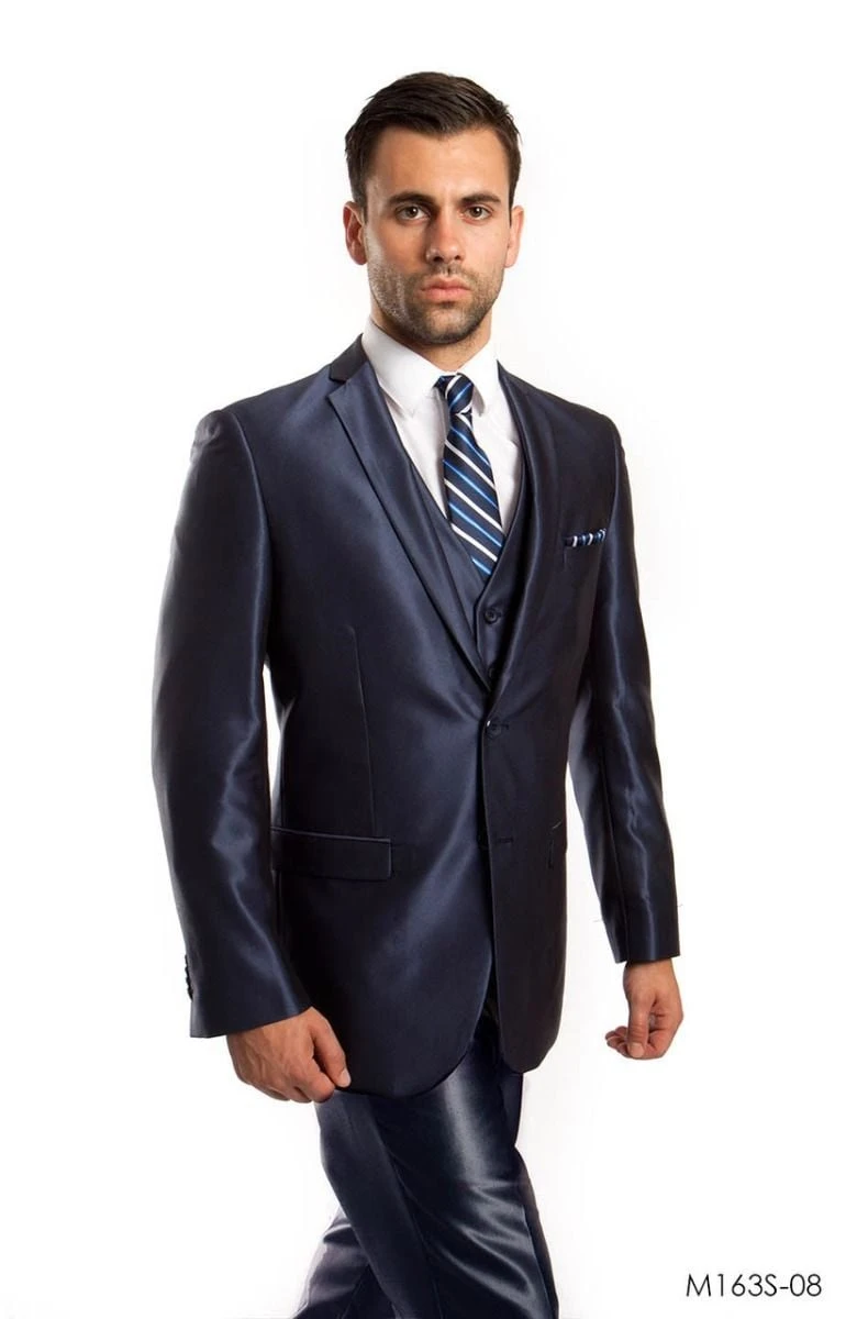 Tazio Men’s 3 Piece Slim Fit Suit – Solid Sharkskin