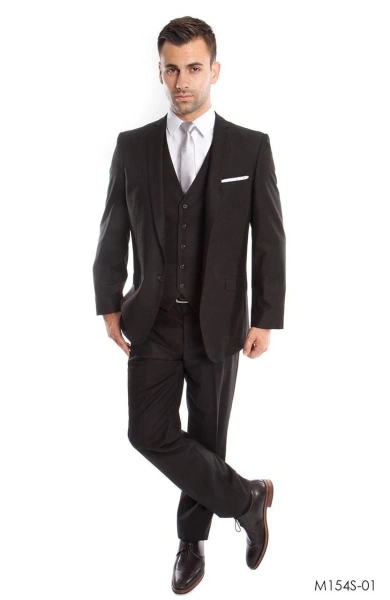 Tazio Men’s 3 Piece Executive Slim Fit Suit – 5 Button Vest.Â