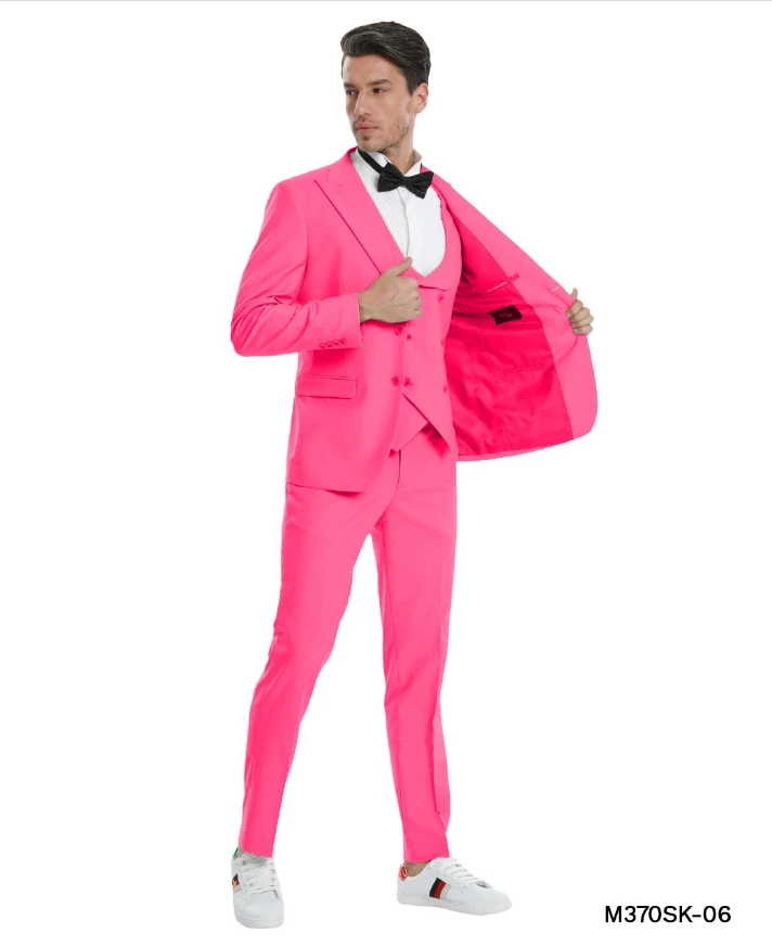 Tazio Men’s 3 Piece Skinny Fit Suit – Lighter Tones