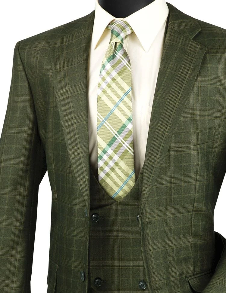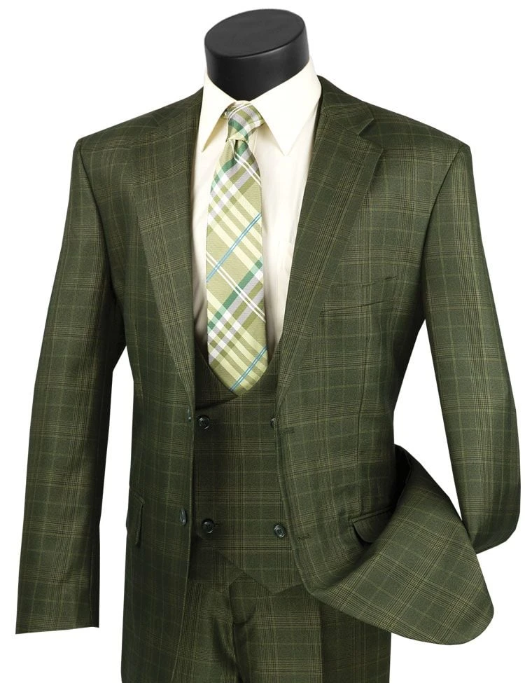 Vinci Men’s 3 Piece Executive Suit – Glen Plaid