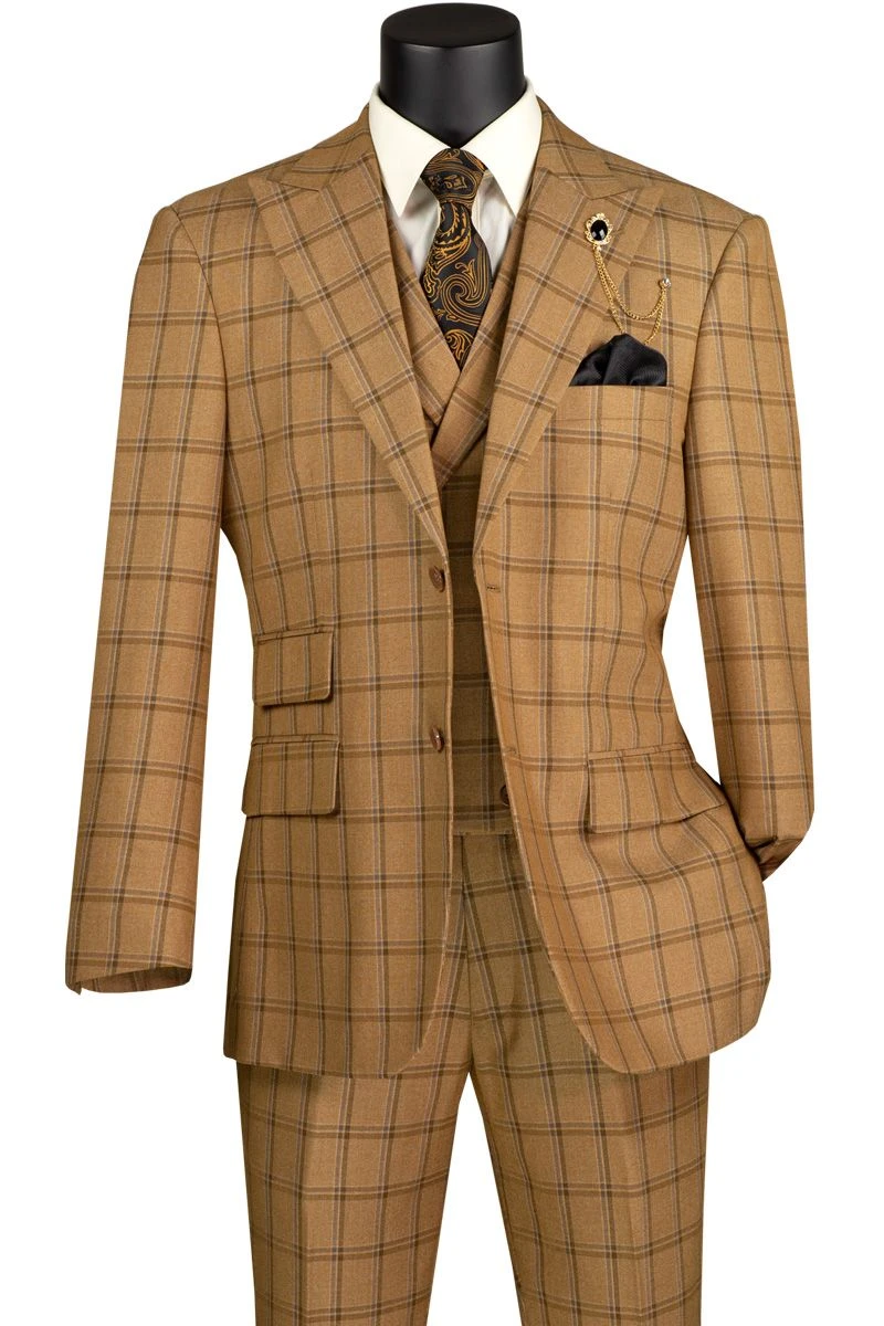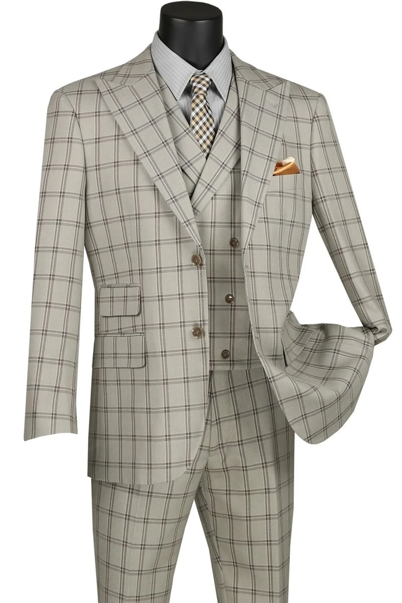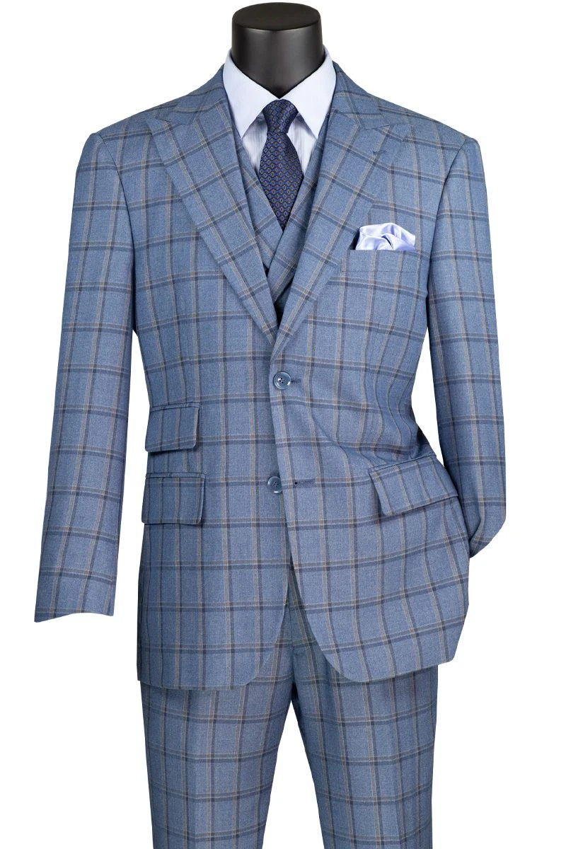Vinci Men’s 3 Piece Modern Fit Suit – Bold Windowpane