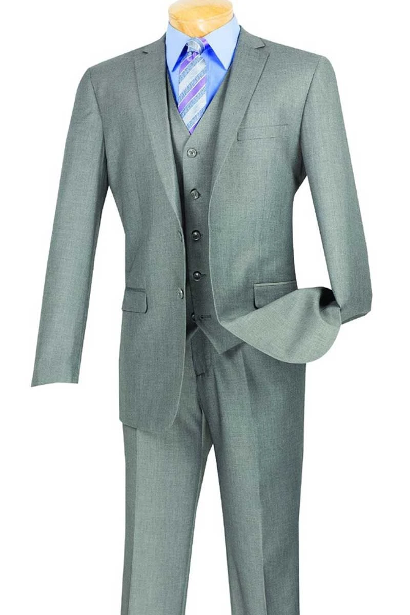 Zacchi Men’s 3 Piece Poplin Outlet Suit – Solid Color Side Vents
