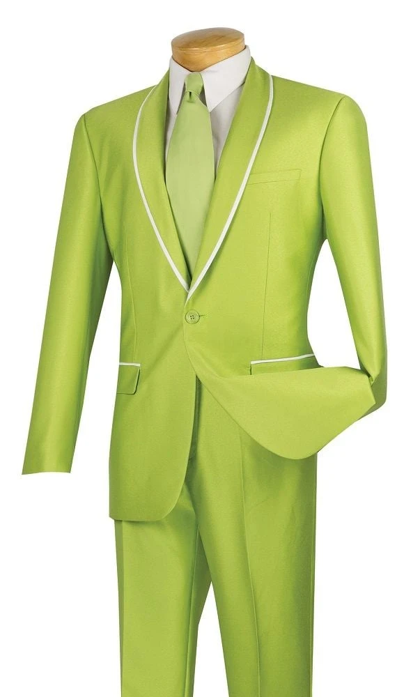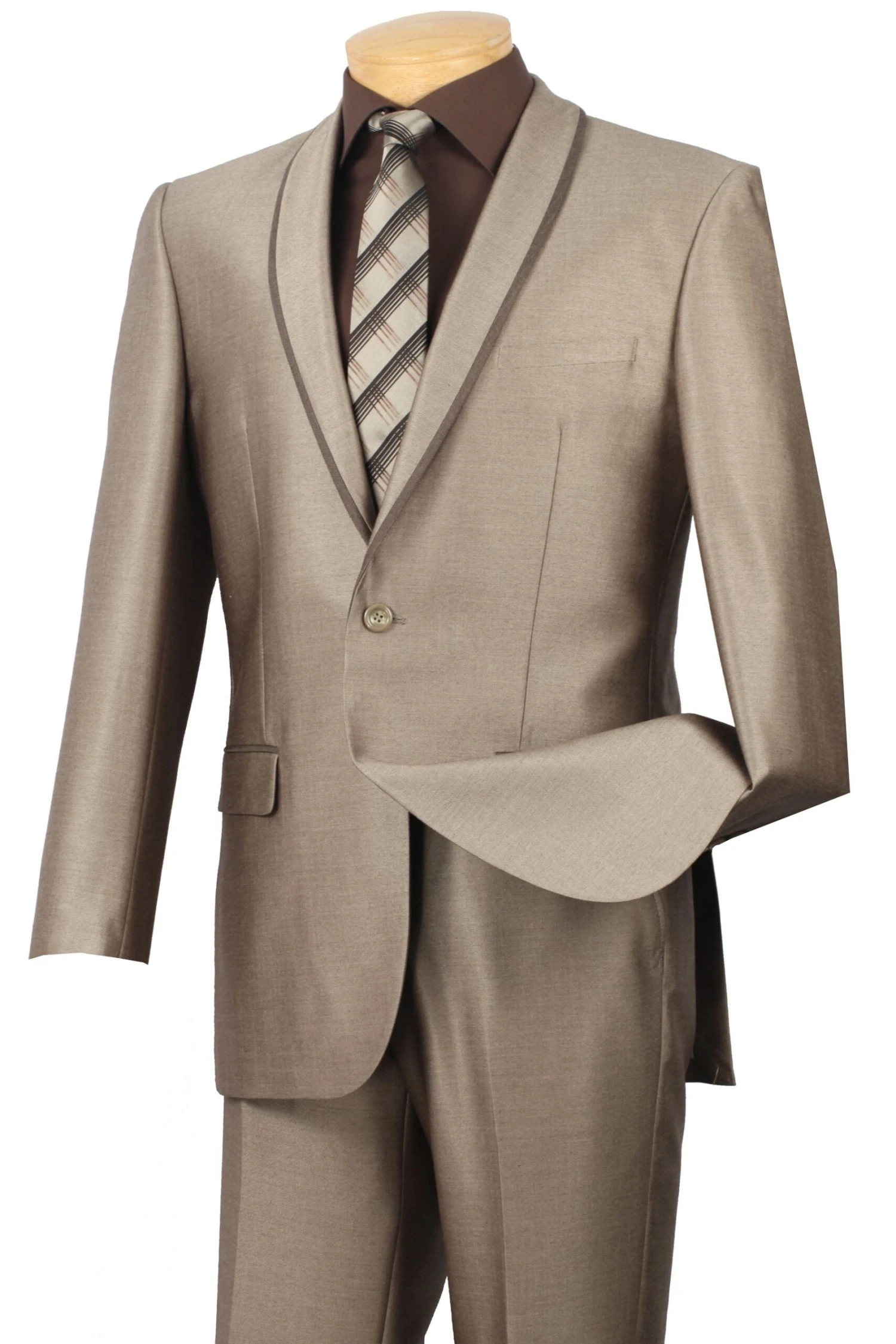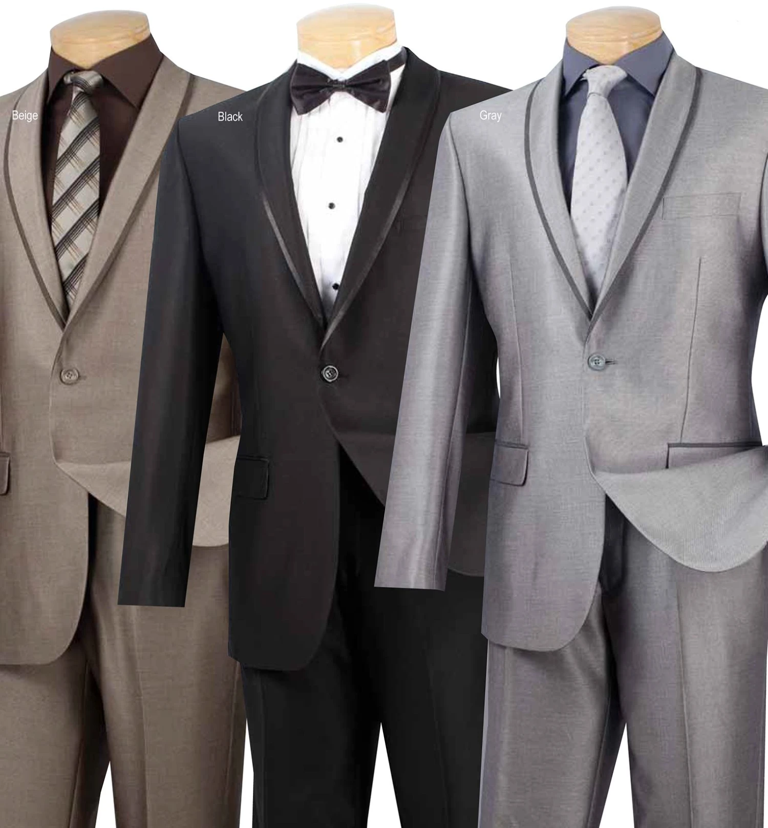 Vinci Men’s Sharkskin Slim Fit Suit – Trimmed Shawl Lapel