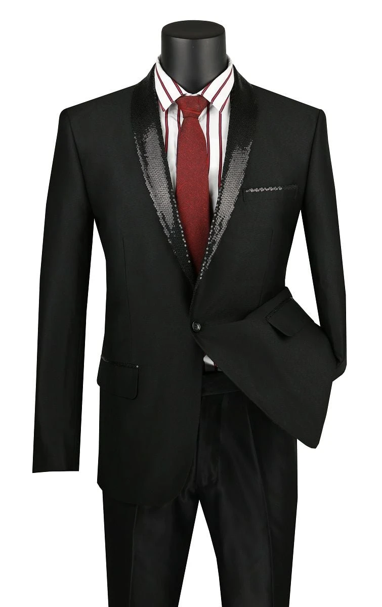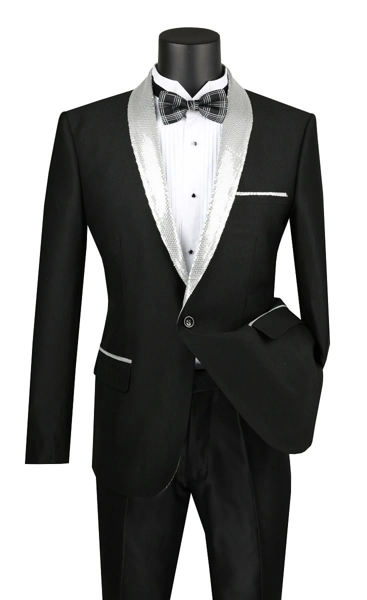 Vinci Men’s Slim Sharkskin Sport Coat – Sequin Shawl Lapel